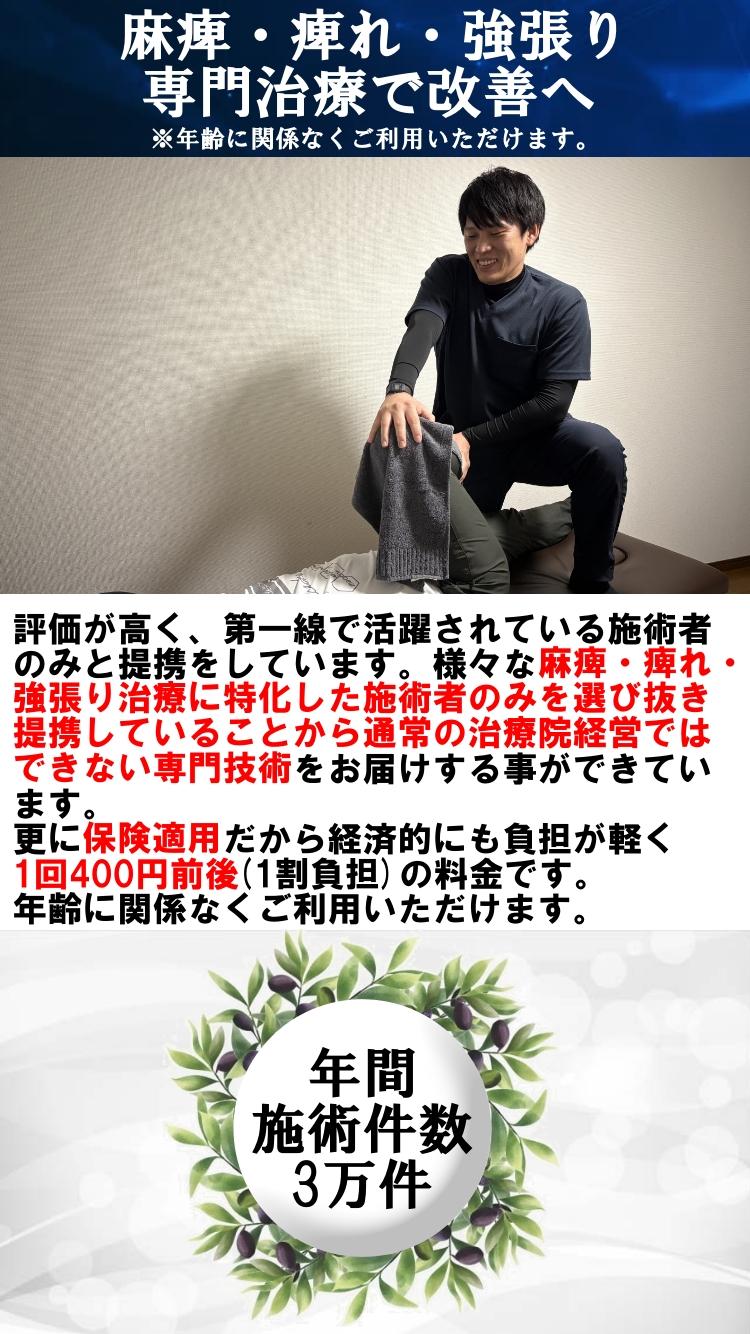 麻痺・しびれ・痛み・むくみ・筋力低下・関節の硬さなどに対応しています。